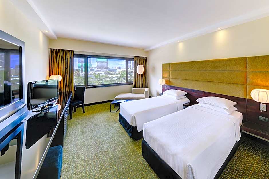 Providing free toiletries and bathrobes, this twin room includes a private bathroom with a walk-in shower, a bath and a bidet. The air-conditioned twin room provides a flat-screen TV with cable channels, a tea and coffee maker, a safe deposit box, a carpeted floor as well as city views.